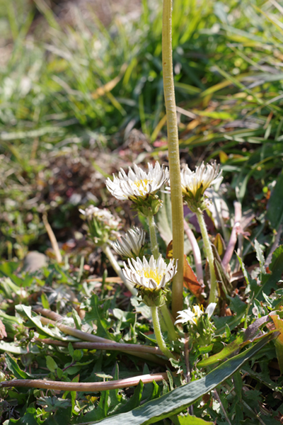 La nouvelle année est arrivée. Près de l’étang où viennent les canards, Des dent-de-lions blancs étaient en fleurs. Les dent-de-lions blanc fleurissent même en hiver. Dans peu de temps, les dent-de-lions jaune pâle fleuriront. Ces dent-de-lions jaune pâle sont une espèce rare dans cette région. [Janvier 2026]